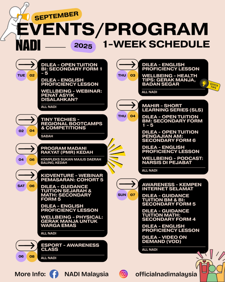 Kelas NADI Mahir sepanjang minggu lepas : Mahir Baiki Gajet Mahir Jahit Mahir Pertanian Pintar Mahir Masak Jika ingin menjadi peserta NADI Mahir di NADI Kampung Kubang Halban bagi pengambilan kedua, sentiasa ikuti Facebook Page NADI untuk info terkini. #pusatsebaranmaklumatnasional […]
